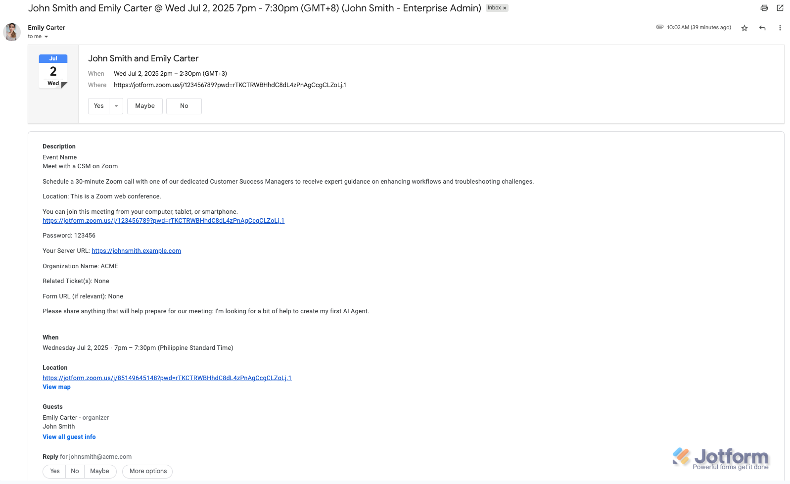 As an administrator, you can schedule a meeting with a Customer Success Manager to get personalized support, guidance, or help with your Jotform Enterprise needs. Here’s how to do it: