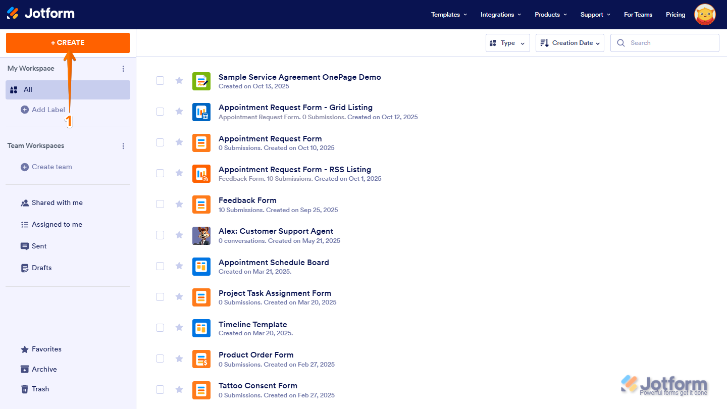 Jotform Form Builder automatically generates a URL as soon as you create a form. Here’s how you can find and copy it: