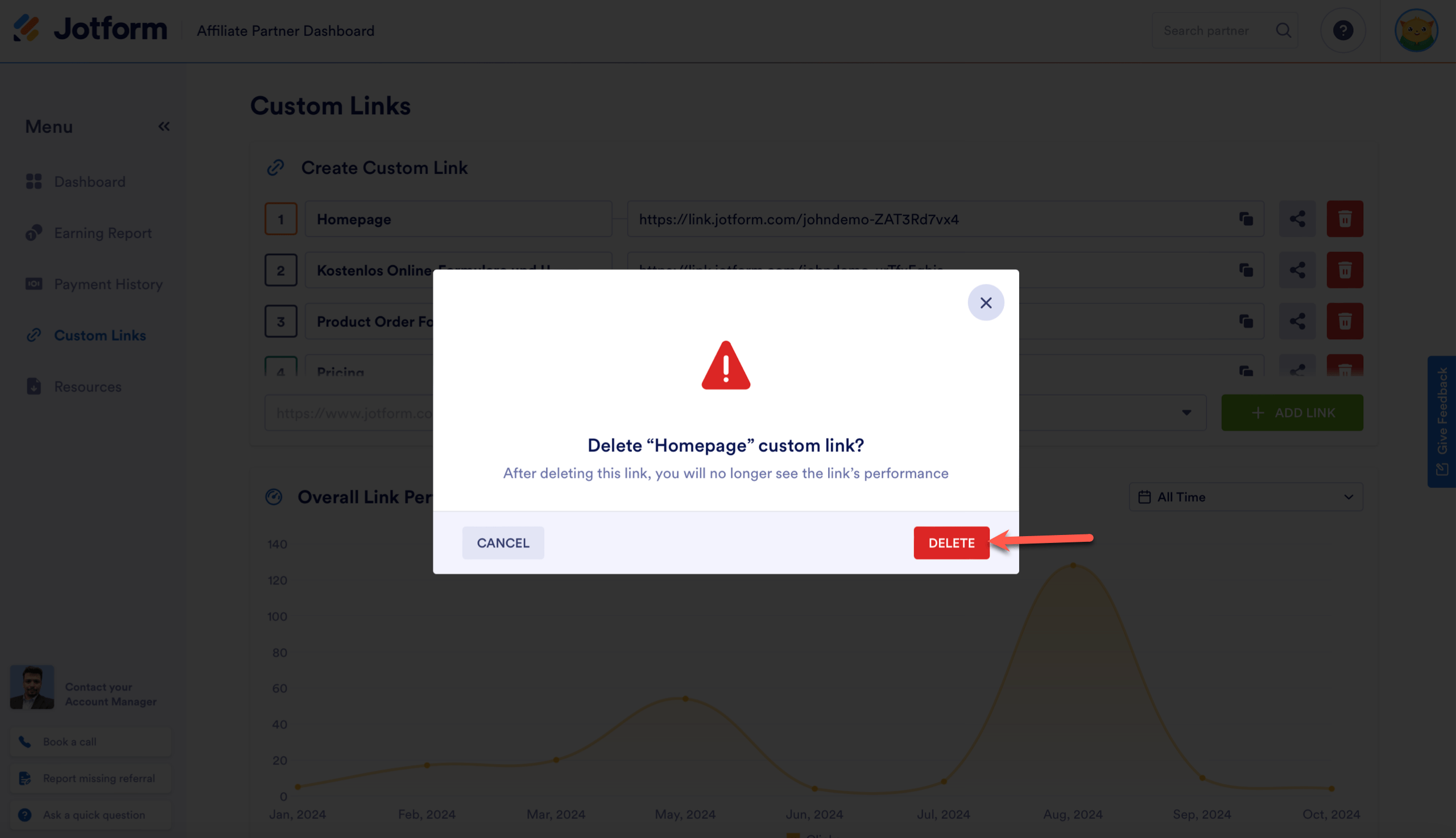 If you have multiple affiliate links, you can easily delete the ones you don’t need. Keep in mind that once that link is deleted, you will no longer be able to track its performance.
