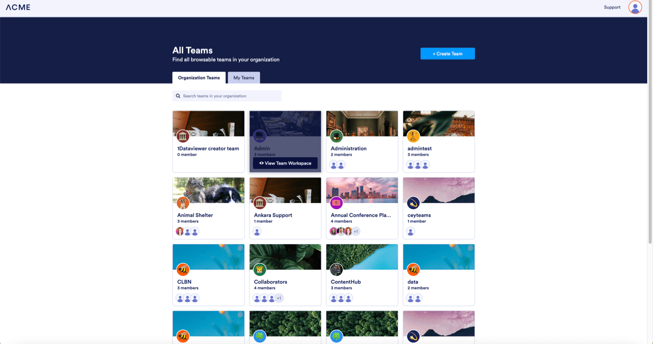 - Then, in the menu that comes up, under Team Workspaces, select the team you want to manage. For example, the Content Team.
