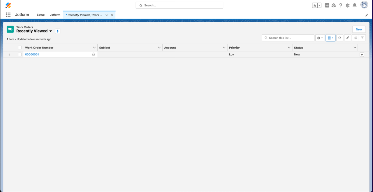 From there, you’ll be able to see any work order submitted with a Jotform for Salesforce form.