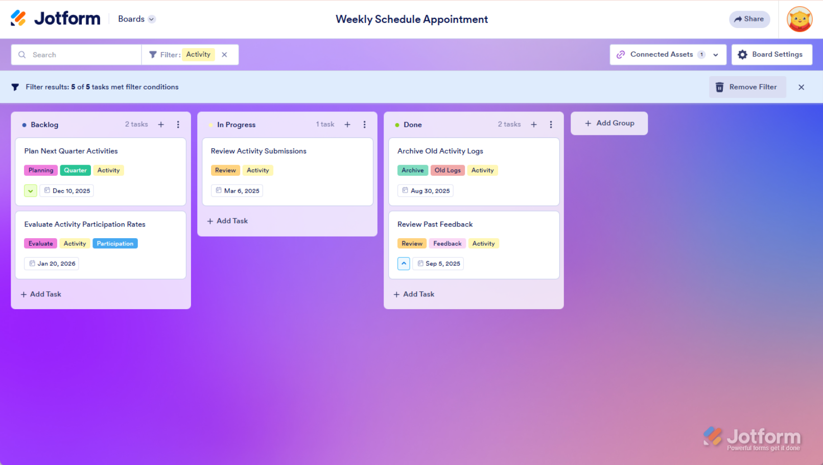 Organizing tasks on Jotform Boards is simple and effective with the use of tags. Tags allow you to categorize tasks, making it easier to filter, locate, and manage them efficiently.