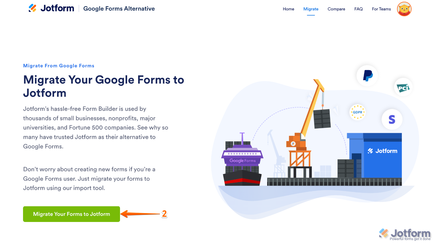 - Now, on the lower-left side of the page, click on Migrate Your Forms to Jotform.