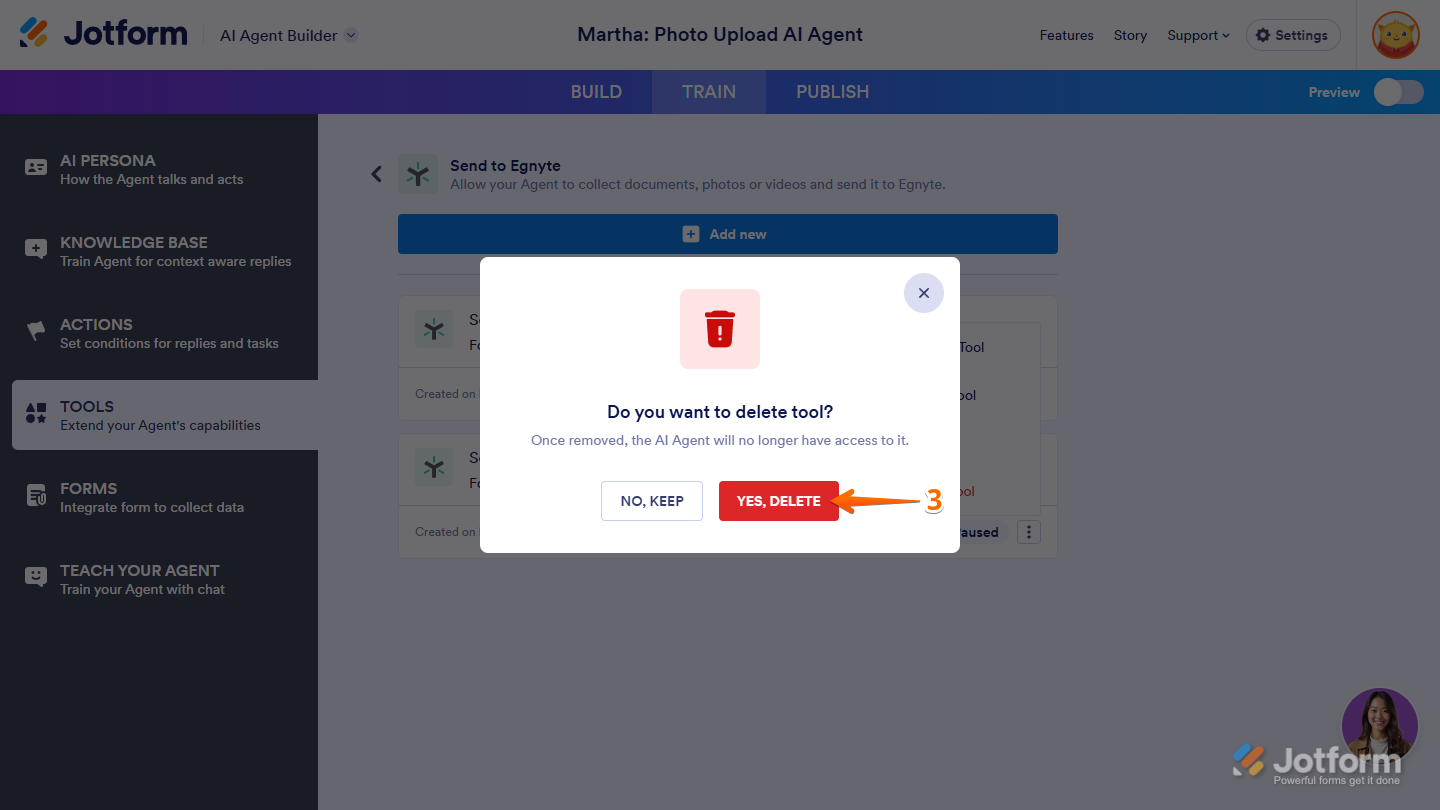 - While in the Tools section under the Train tab in your AI Agent, click on Send to Egnyte.