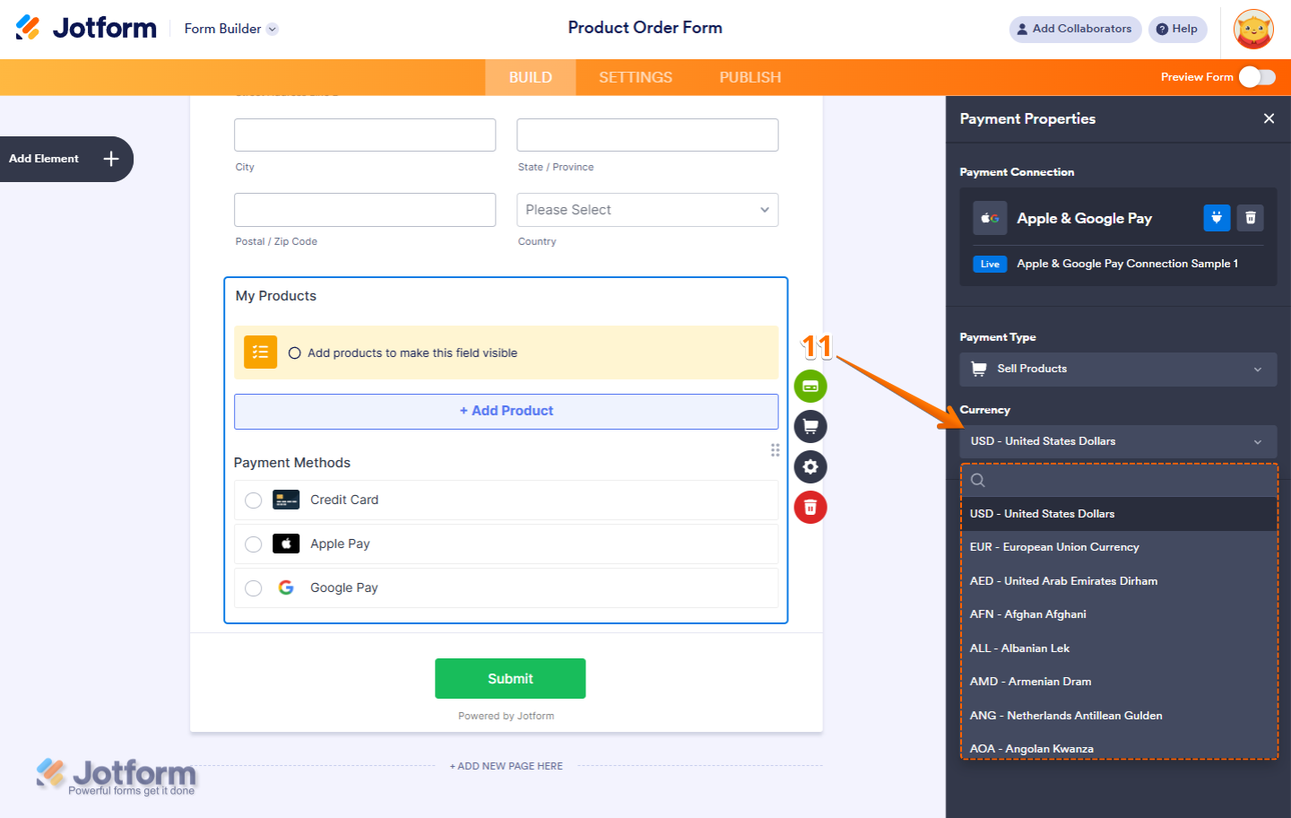 - While you (as the form owner) can configure Apple Pay & Google Pay, your users must also have these set up in their browsers. This means they must have a valid payment method saved in their Google Pay or Apple Pay account. If not, these payment options won’t be shown on the payment screen.