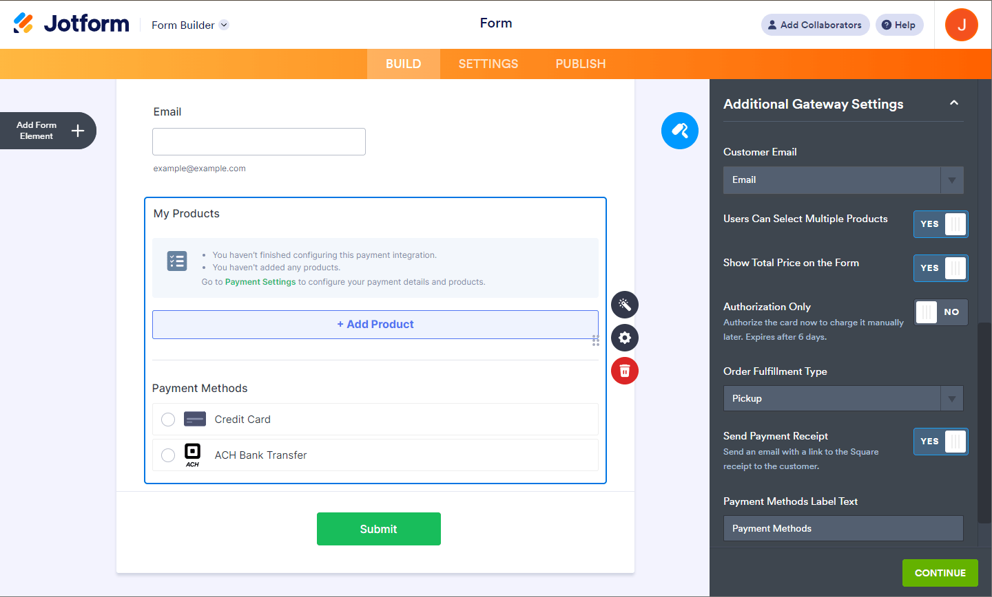 Adding and Setting up Square ACH in the Form