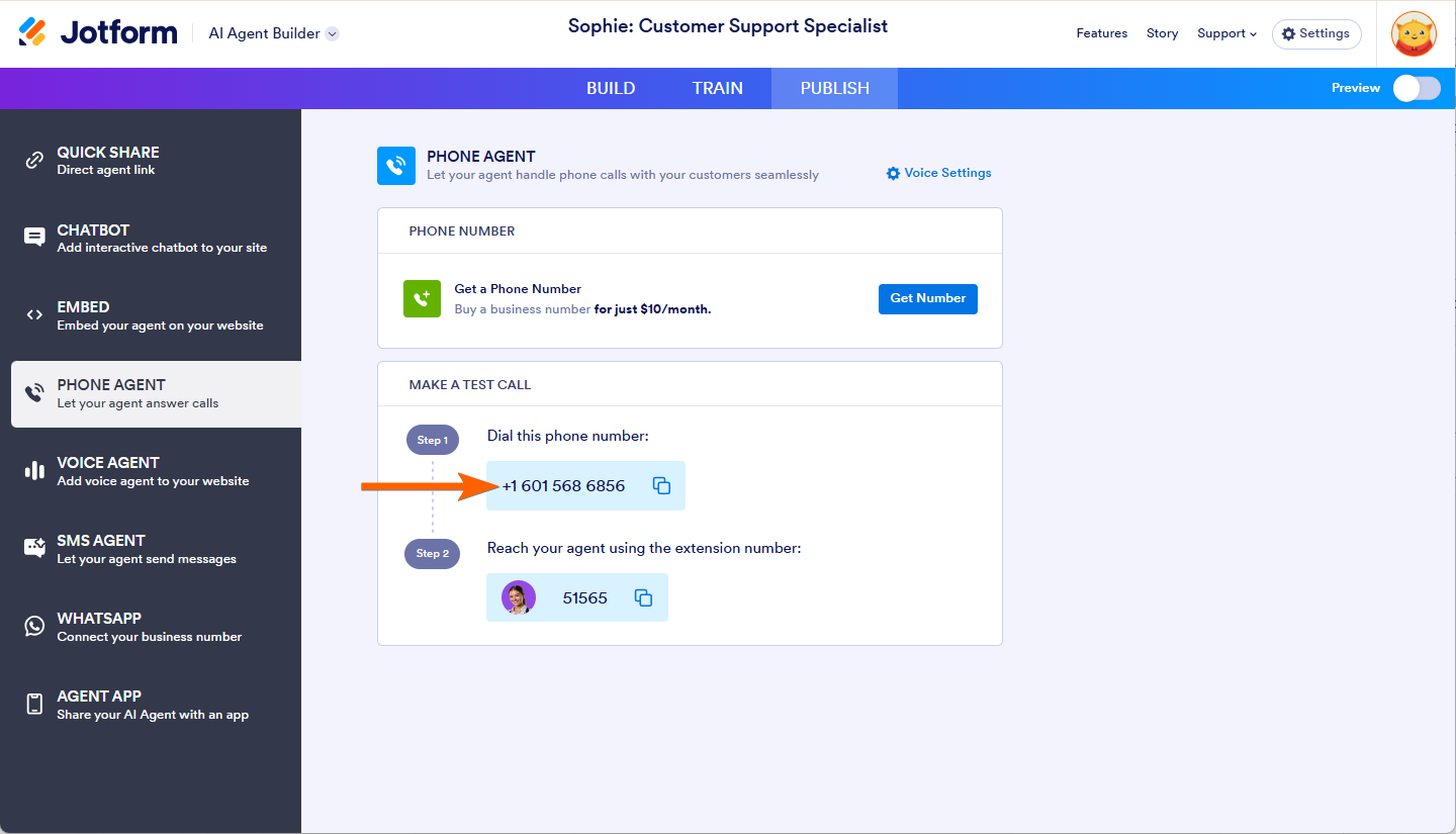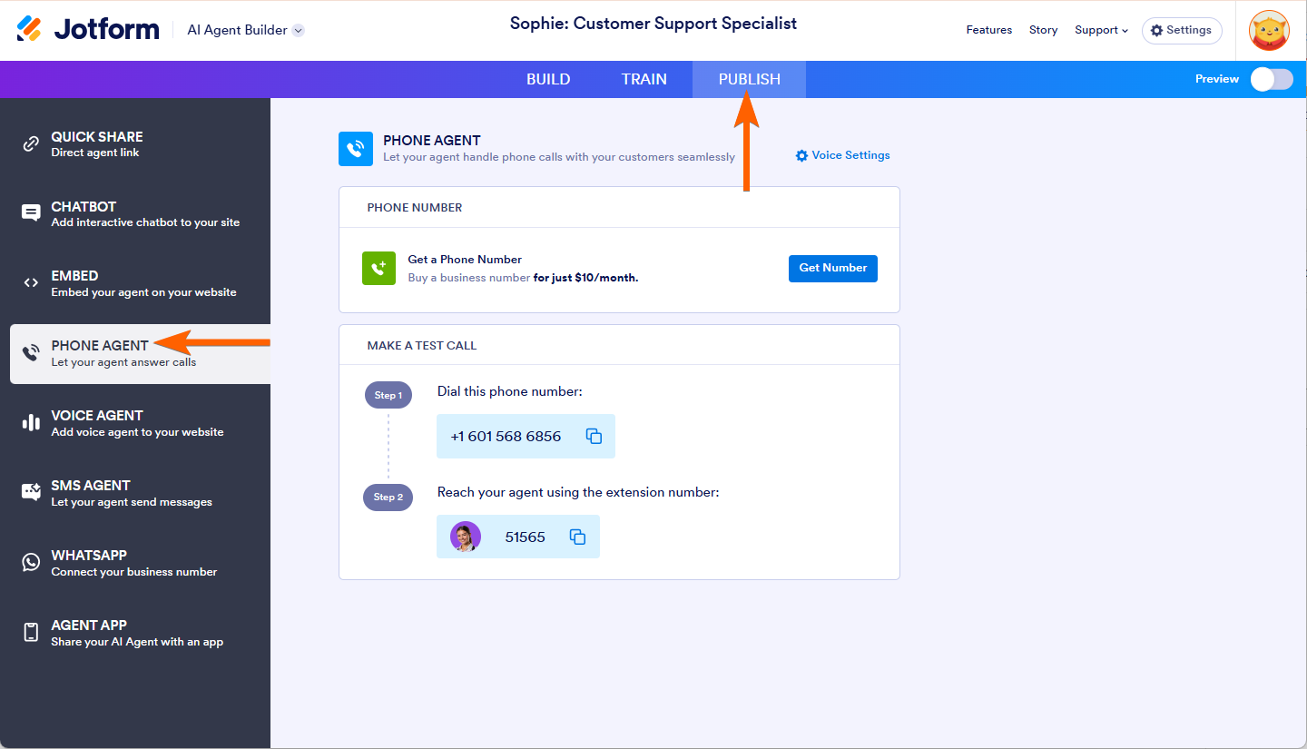 - Select Phone Agent in the left panel.