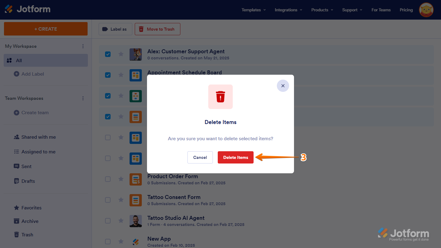 - In the Confirmation window that pops-up, click on Delete Items, and that’s it.