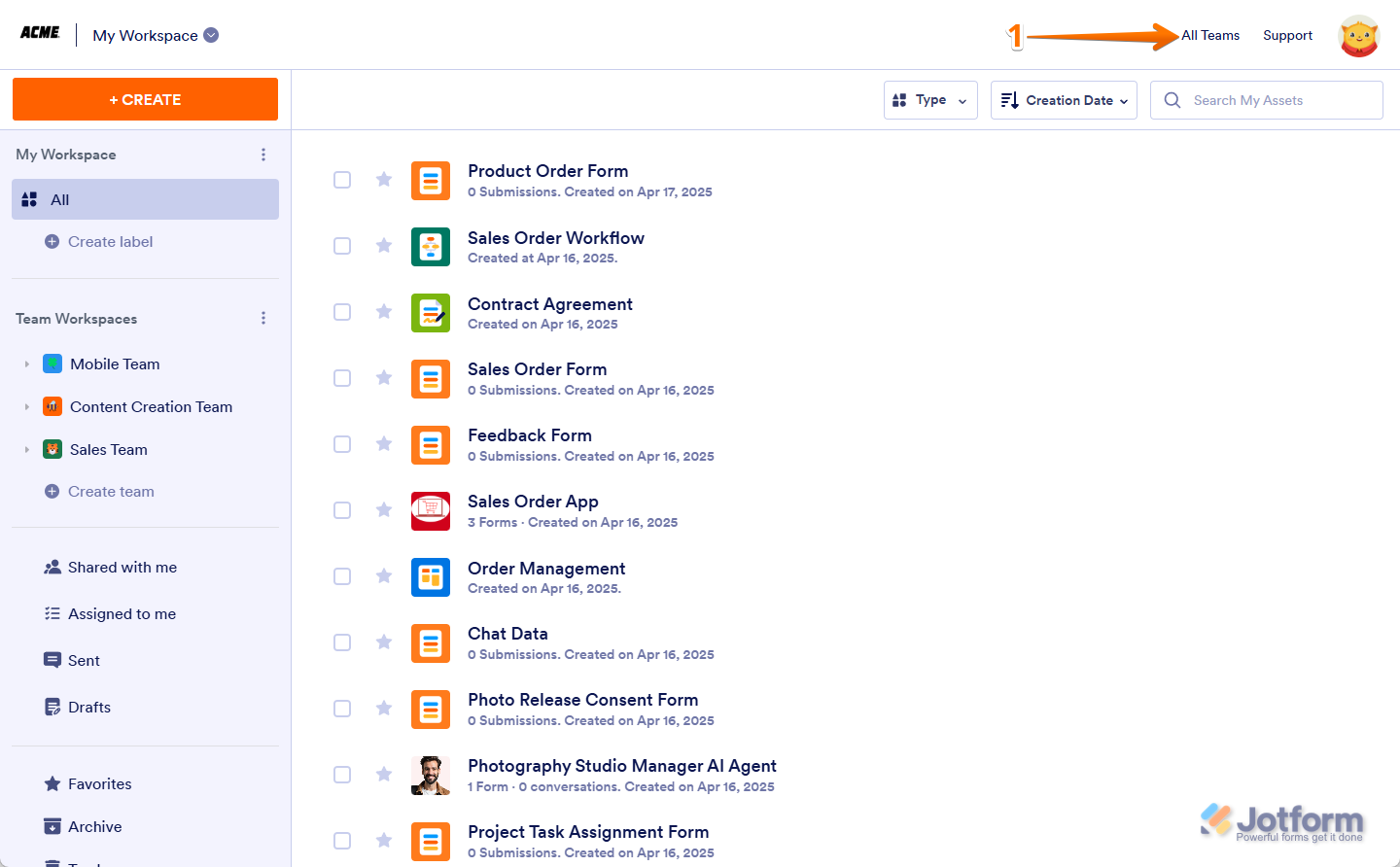 Joining a Jotform team makes it easy to collaborate with colleagues by sharing access to forms, submissions, and workspaces—all in one place. Whether you’re part of a company, school, or organization, you can quickly request to join a team.