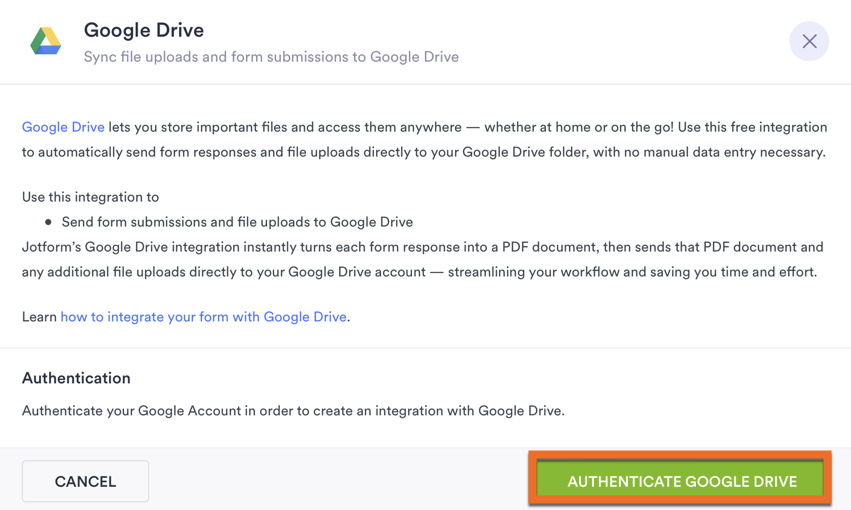 Can you choose to add the files to your chosen folder on google drive or can you only send to a location determined by jotform/google drive?