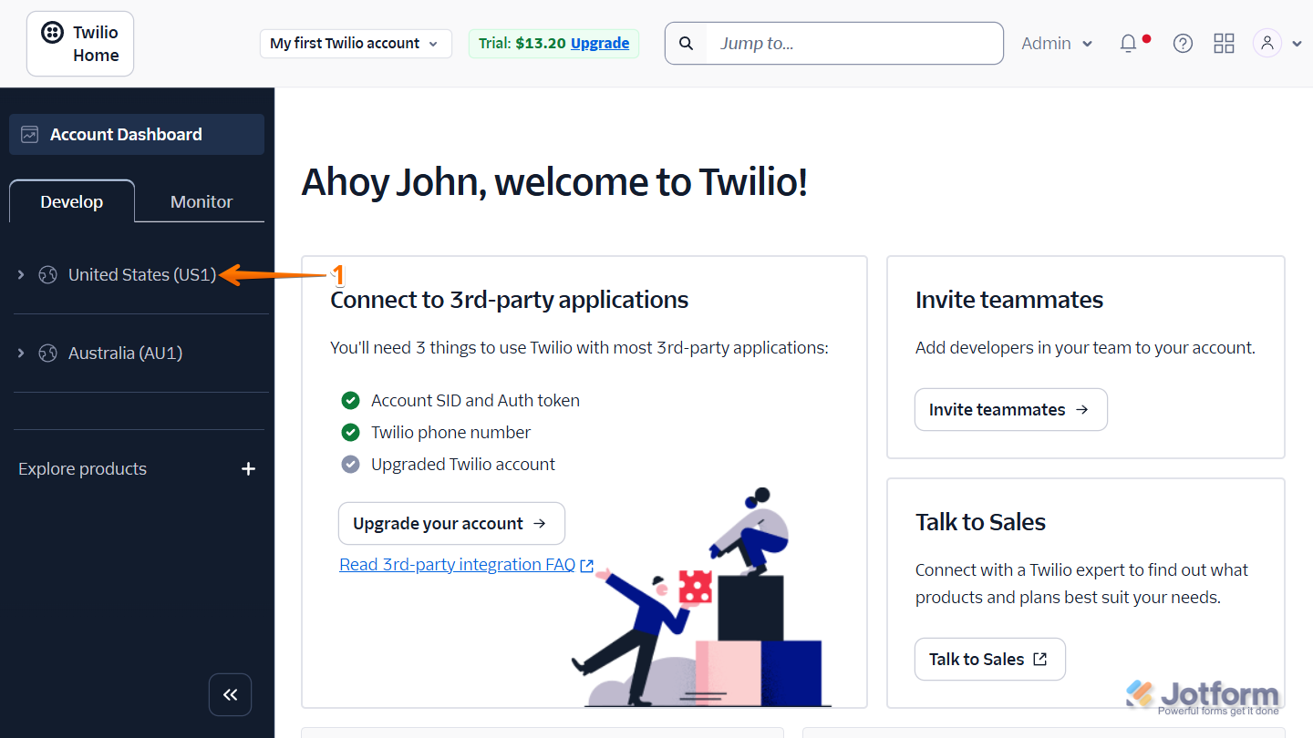 To use Call Forwarding in your Jotform Agent, you’ll need to connect your Twilio account and make sure you’ve activated a Twilio phone number. Our guide on How to Connect Your Twilio Account to Jotform AI Agents walks you through it. Once that’s set up, you’re ready to move on to the steps below to get call forwarding up and running.