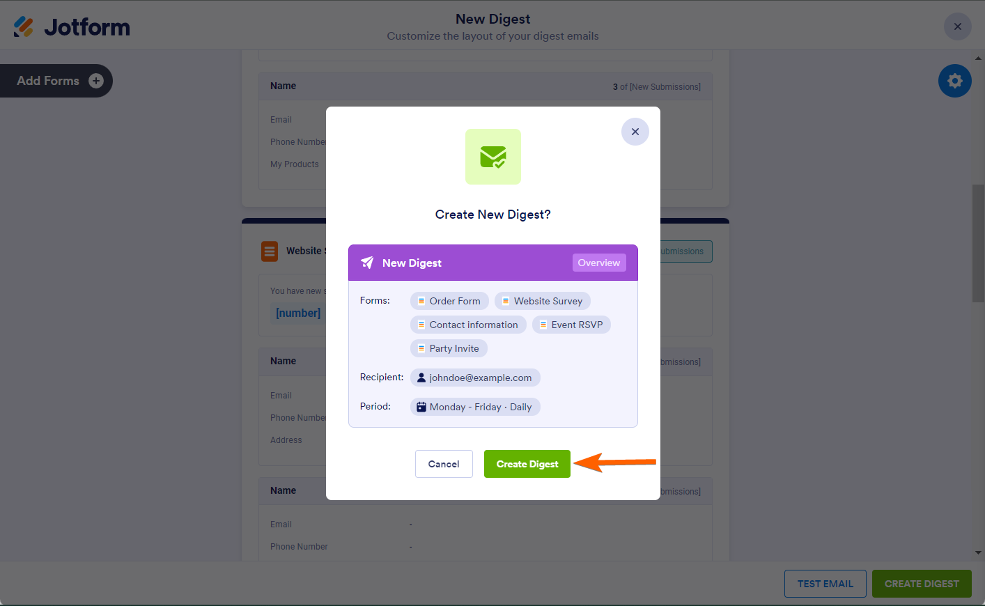 - Then, click on Create Digest in the bottom-right corner of the page.