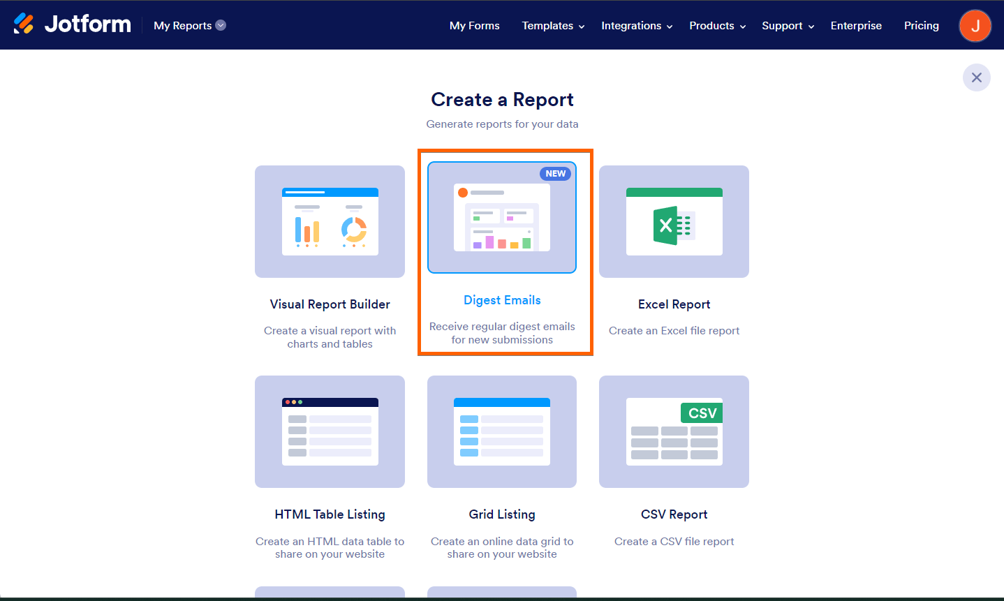 There are several ways to start creating Digest Emails—you can set them up from your Workspace page or directly through the Emails tab in Form Builder.