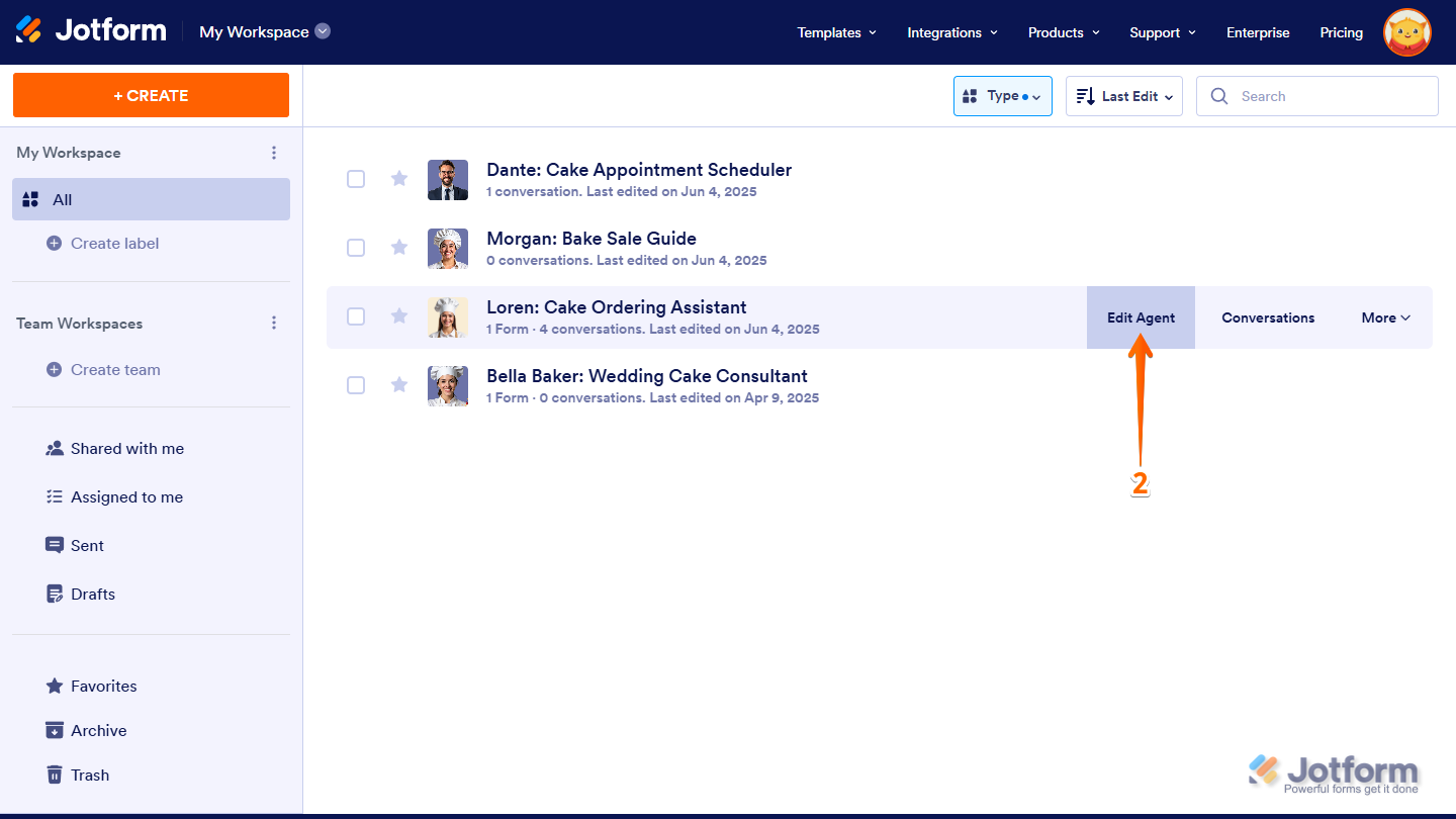 - Hover your mouse over the AI Agent that you want to set up a Show Presentation Tool for, and click on Edit Agent on the right side of the page.
