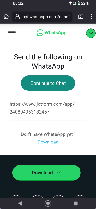 - If you haven’t downloaded the app, you’ll be prompted to download it. If you already downloaded it, you’ll be taken straight to WhatsApp.