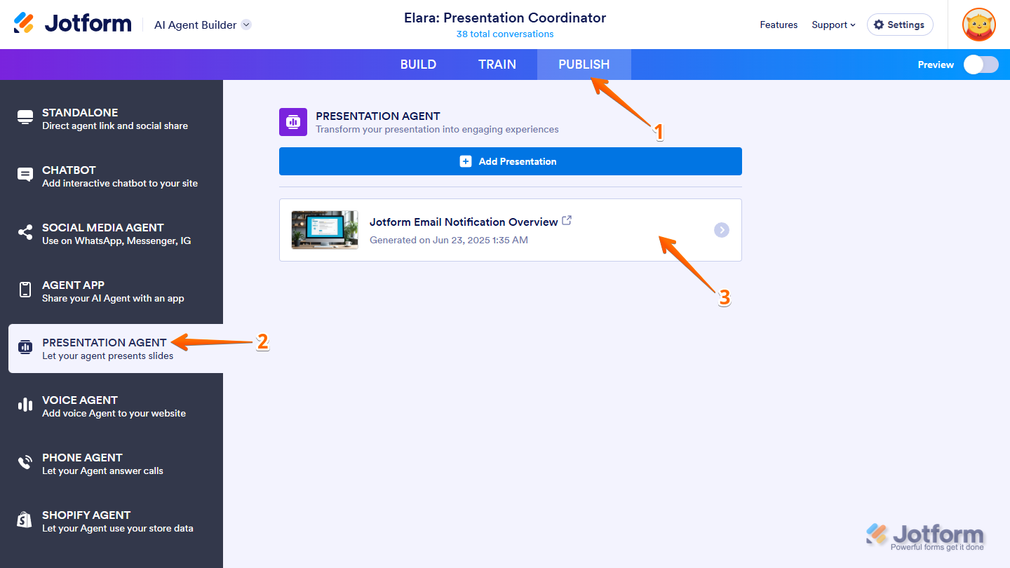 Sharing your Presentation Agent is easy. Here’s what to do: