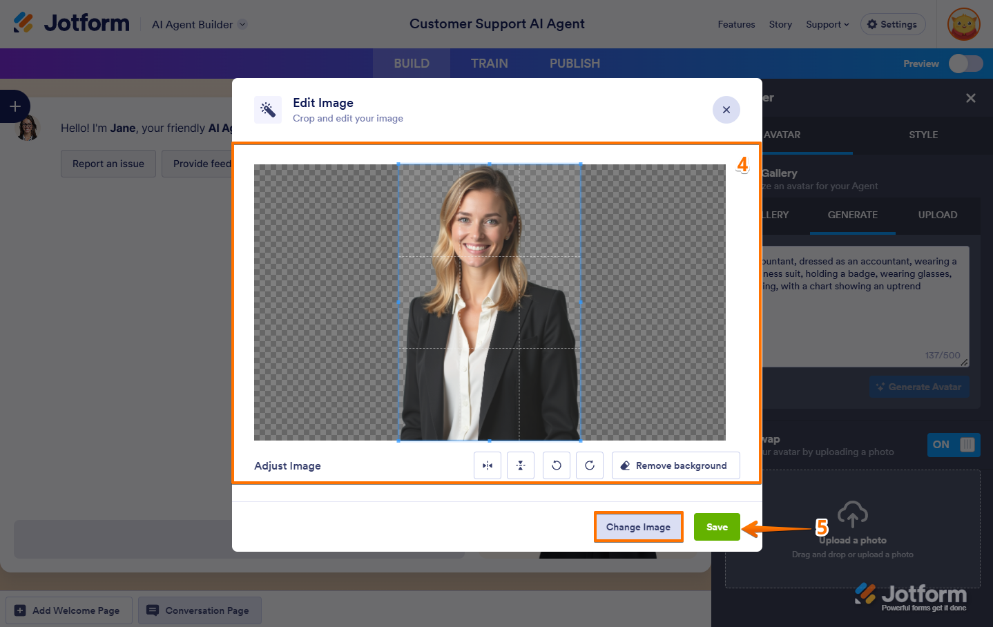 - Change Image — Replace your current image with a new one.