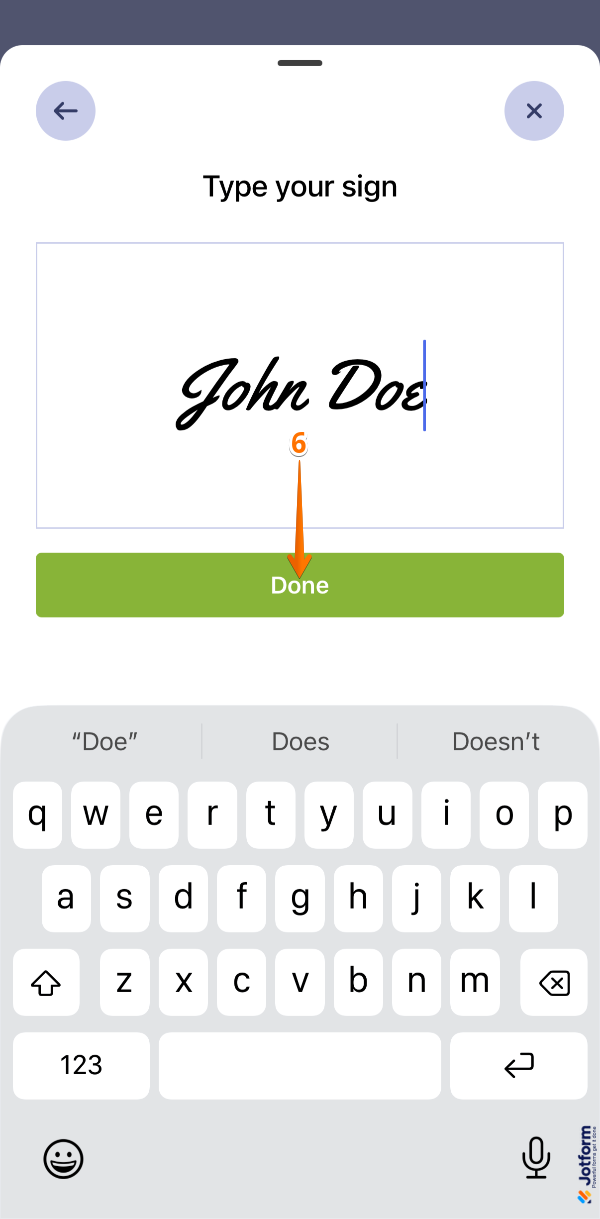 - After choosing your signature option, draw or enter your signature, and then tap on Done.