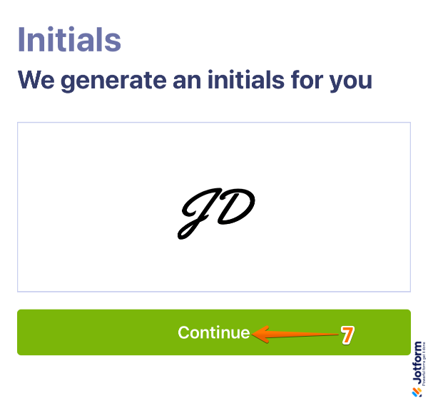 - Now, the app will automatically generate your initials based on your signature, then tap on Continue, and you’re good to go!