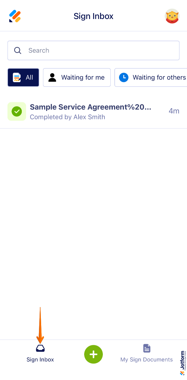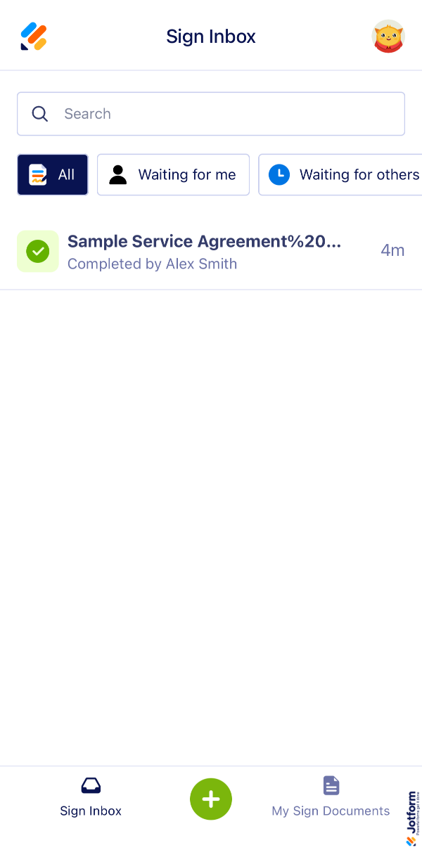 And that’s it! You’ll be redirected to the Sign Inbox section in your Jotform Sign Mobile App.