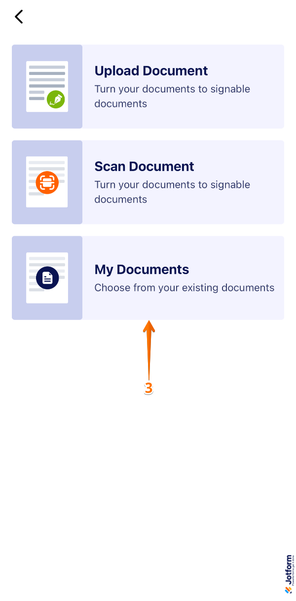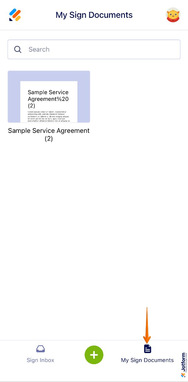 If you’re an existing Jotform Sign user, or if you’ve just created a new document, you can view all your documents by tapping on the My Sign Documents tab in the bottom-right corner of the screen.