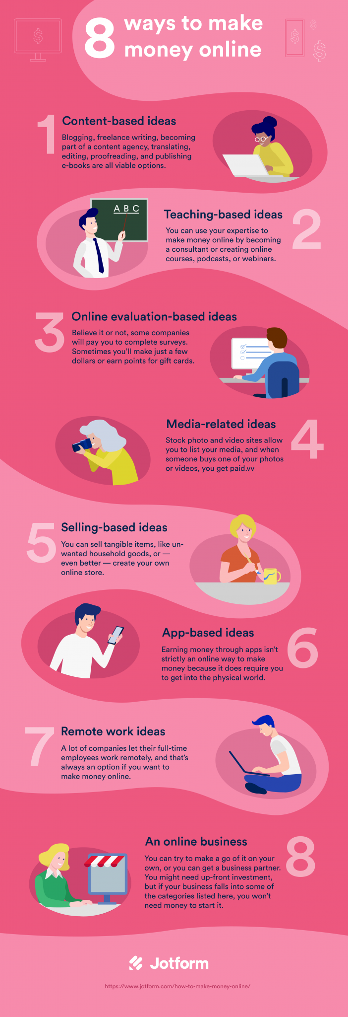 Here’s an overview of the eight most popular ways to make money online.