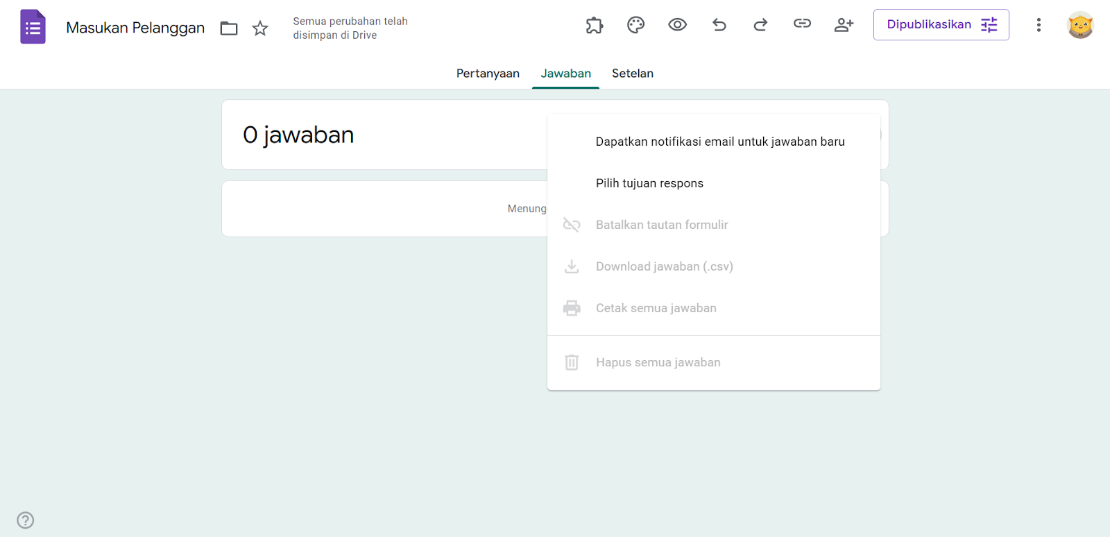 - Di Google Formulir Anda, klik ikon tiga titik di sudut kanan atas.