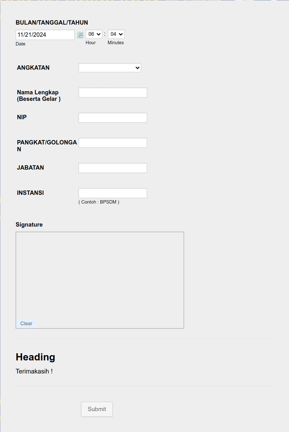 Formulir Penerimaan Peserta Didik baru sesuai dengan format Dapodik