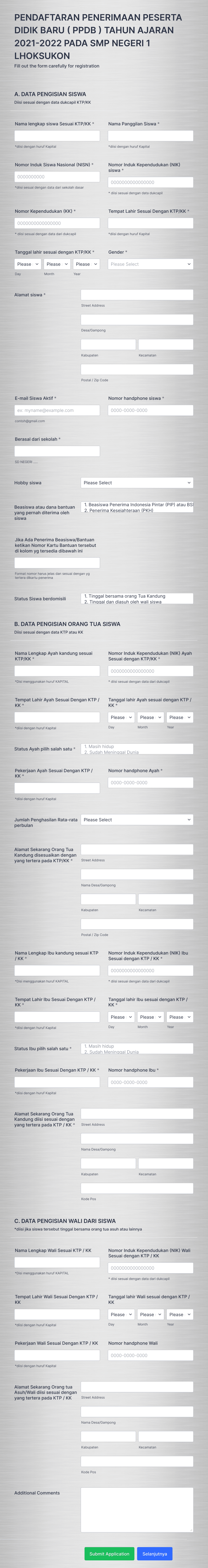 Formulir Aplikasi Pendaftaran Sekolah
