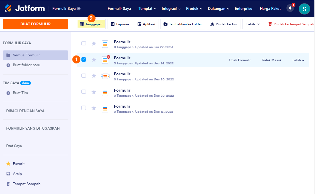 - Buka Formulir Saya dan pilih formulir dengan entri yang ingin Anda lihat.