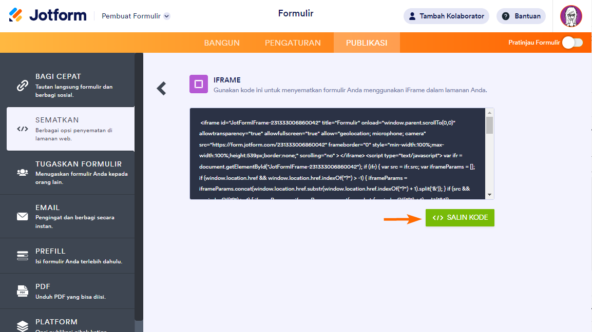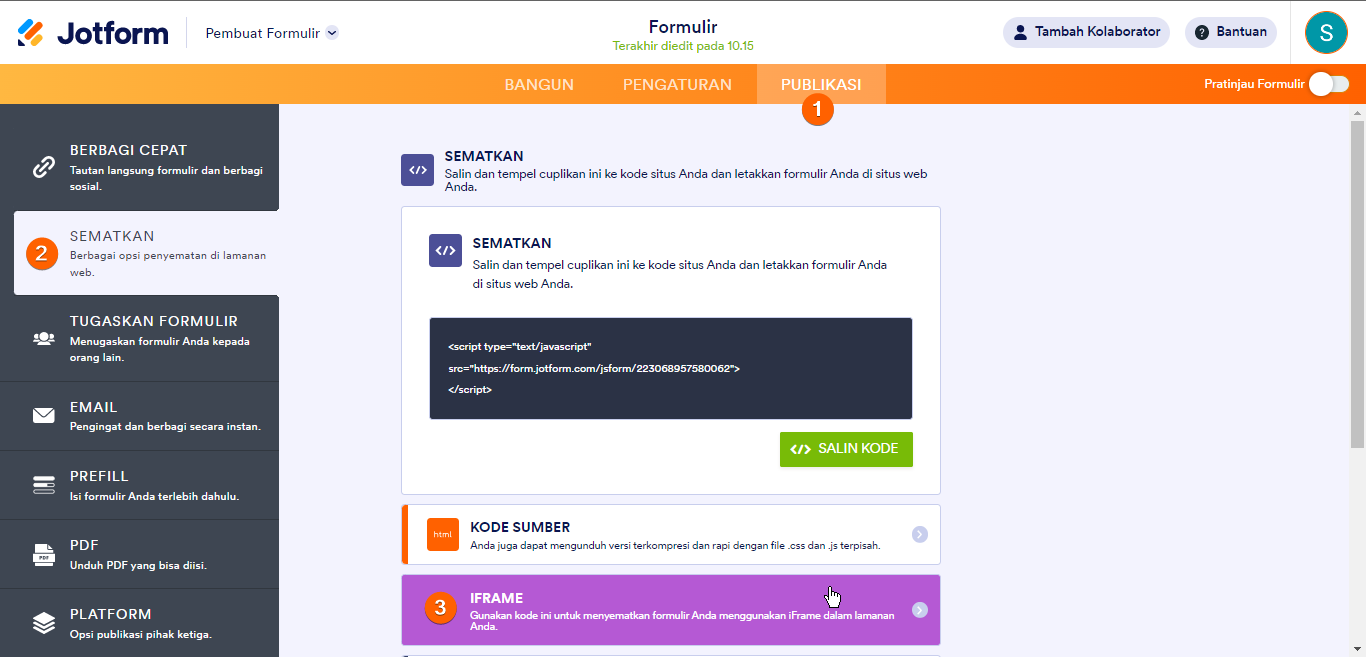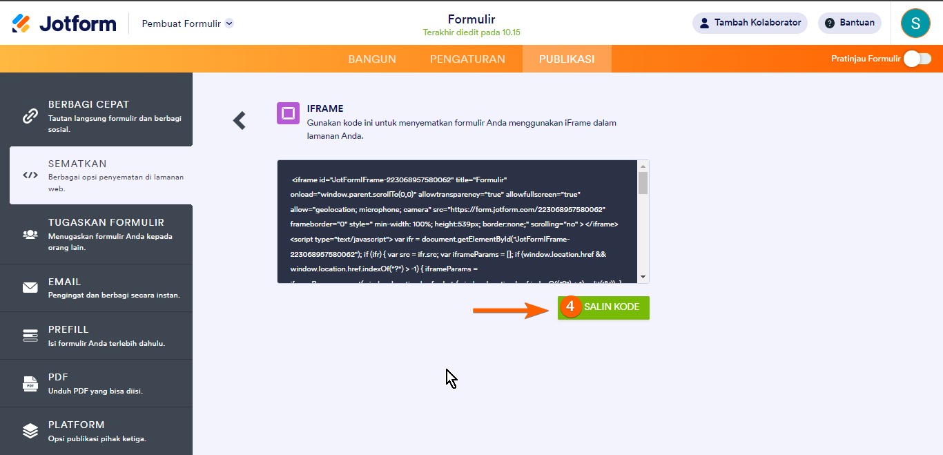 Berikut cara mendapatkan kode iFrame formulir Anda: