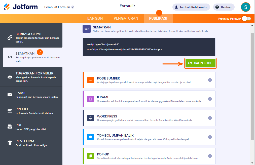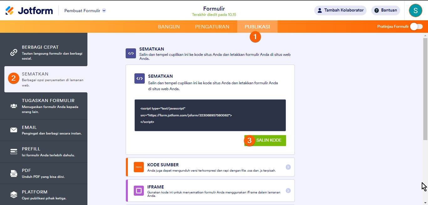 Berikut cara mendapatkan kode sematan formulir Anda: