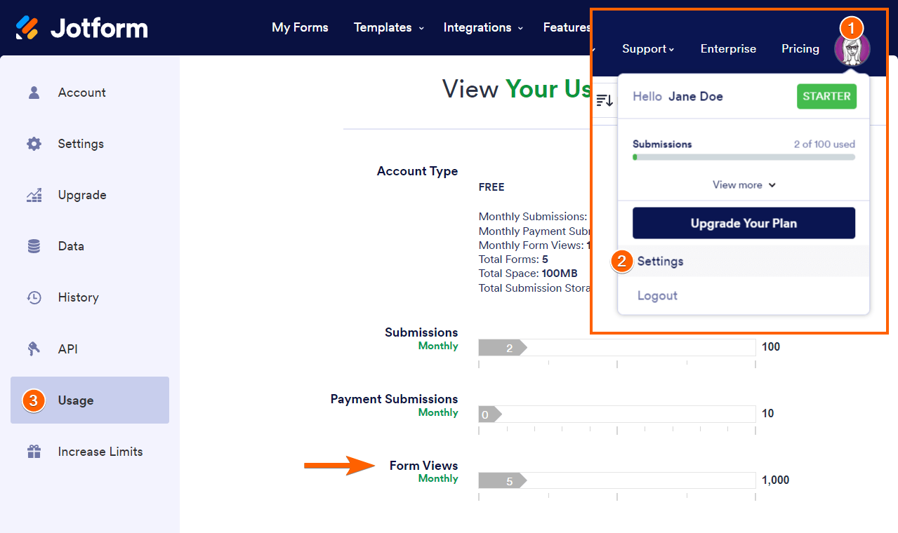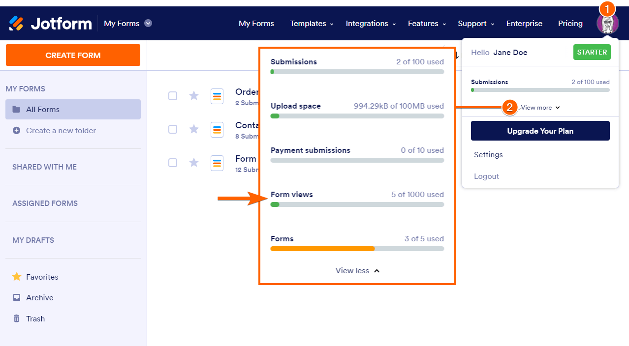 Tampilan formulir kadang-kadang disebut sebagai tayangan dan itu adalah semua jenis pemuatan formulir. Jadi, jika Anda memiliki halaman di situs web yang mendapat 1.000 kunjungan per bulan dan menyematkan formulir di halaman yang sama, Anda tercukupi dengan paket gratis – dari segi tampilan formulir. Setiap kali seseorang memuat halaman Anda akan juga memuat formulir dan itu akan menjadi tampilan formulir.