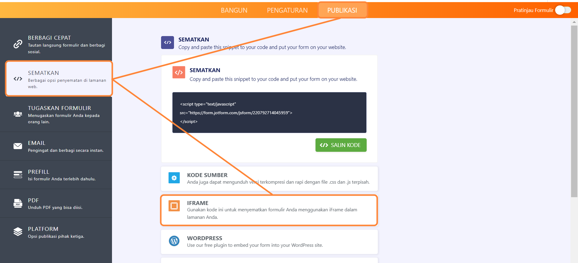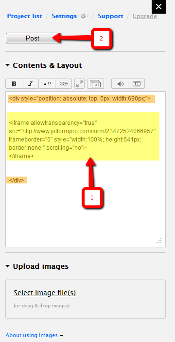 4. (1) Tempel kode iframe Jotform di kotak editor konten Cargo.