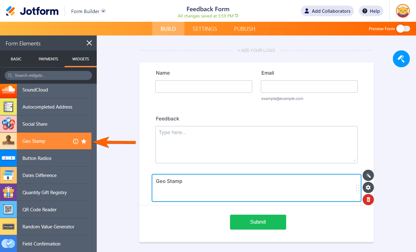 - Cari Geo Stamp dan tambahkan ke formulir Anda.
