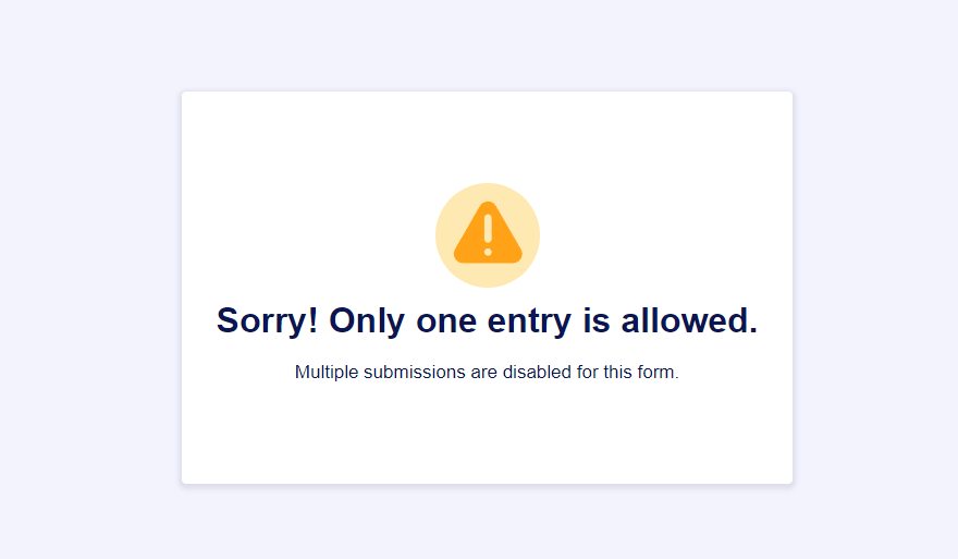 Nah, bagaimana cara kerja fitur ini? Itu mudah! Saat seseorang mengirimkan formulir Anda dengan informasi yang sama dari Bidang Unik yang dipilih, mereka akan mendapatkan pesan peringatan berikut.