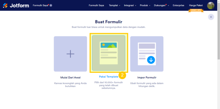 2. Pilih opsi Pakai Templat yang ada di tengah layar.