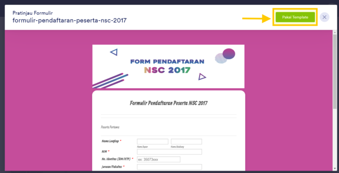 Jika Anda memutuskan untuk menggunakan templat tersebut, klik tombol Pakai Templat di sisi kanan layar.