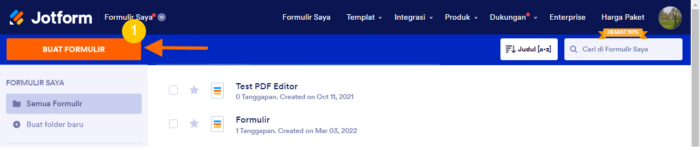 1. Buka halaman Formulir saya dan klik tombol Buat Formulir.