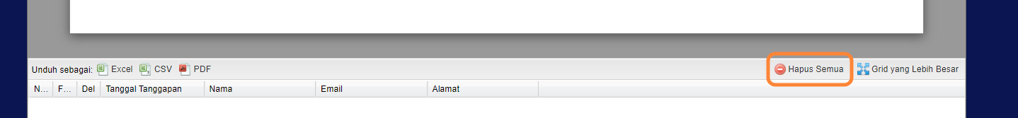 Anda dapat menggunakan kotak centang Pilih semua di sudut kiri atas tabel untuk memilih semua entri jika Anda perlu menghapus semua tanggapan.