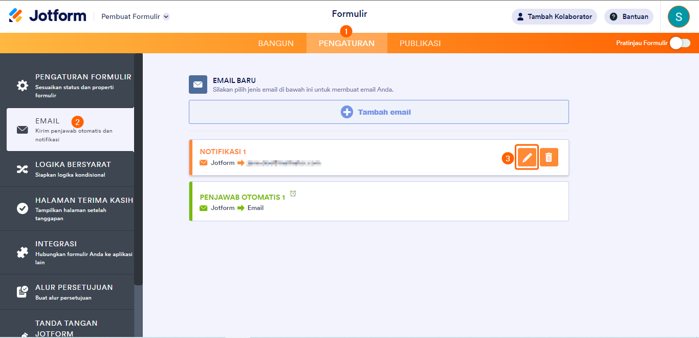 - Di Pembangun Formulir, buka tab Pengaturan.