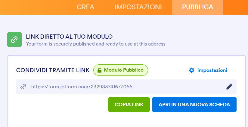 Ora incolla il link e, in pochi secondi, vedrai il tuo modulo.