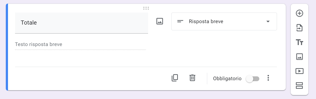 - Includi un campo Risposta breve nel tuo modulo e dagli il nome “totale”.
