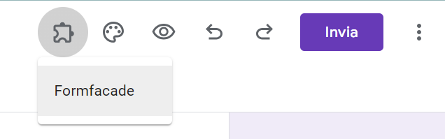 - Seleziona il componente aggiuntivo Formfacade dal menu dei componenti aggiuntivi nell’angolo superiore destro del modulo.