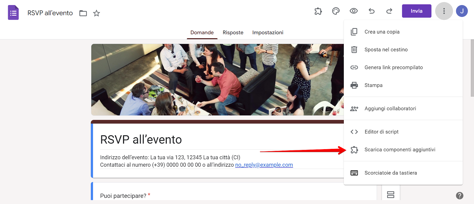 - Clicca sull’icona con i tre puntini in alto a destra e seleziona Scarica componenti aggiuntivi.