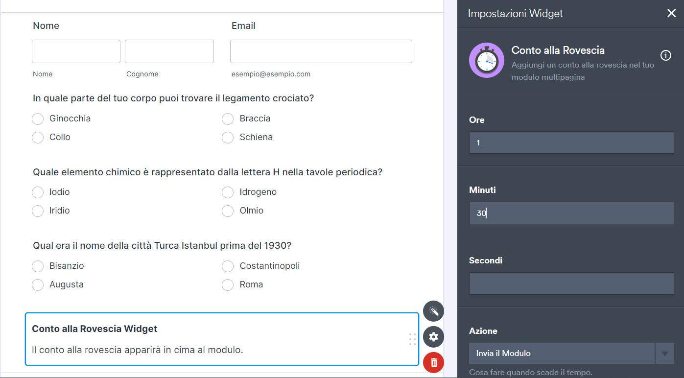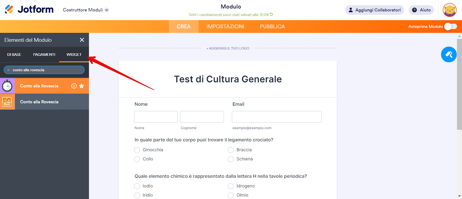 - Seleziona il widget di Jotform Conto alla Rovescia.