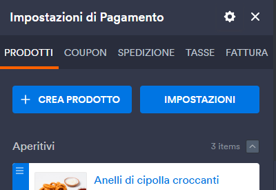 Sotto la scheda Prodotti, puoi creare nuovi prodotti e trascinarli nelle categorie. Nella sezione Impostazioni, puoi modificare il layout, rinominare le categorie di prodotto e impostare regole come gli importi minimi per gli ordini.