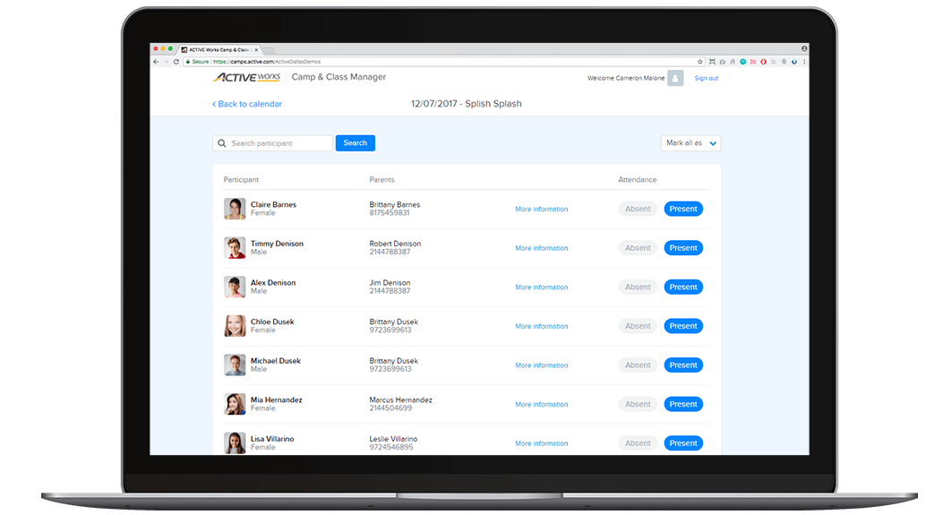 Il Camp Manager di ACTIVEWork è un fornitore completo di servizi di registrazione per i centri estivi, un’opzione popolare per campi diurni, campi notturni, corsi d’arte ed eventi educativi. Un grande vantaggio è che include strumenti di marketing integrati per diffondere la notizia di ogni evento e aumentare le iscrizioni.