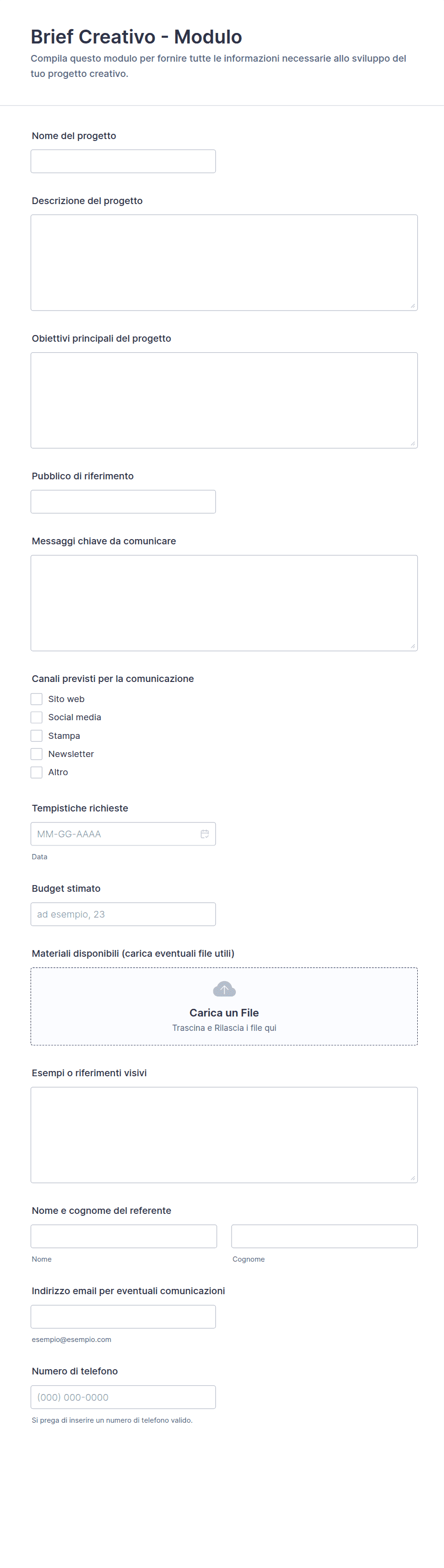 - Per il feedback dei clienti, includi valutazioni di soddisfazione e campi aperti per i commenti.