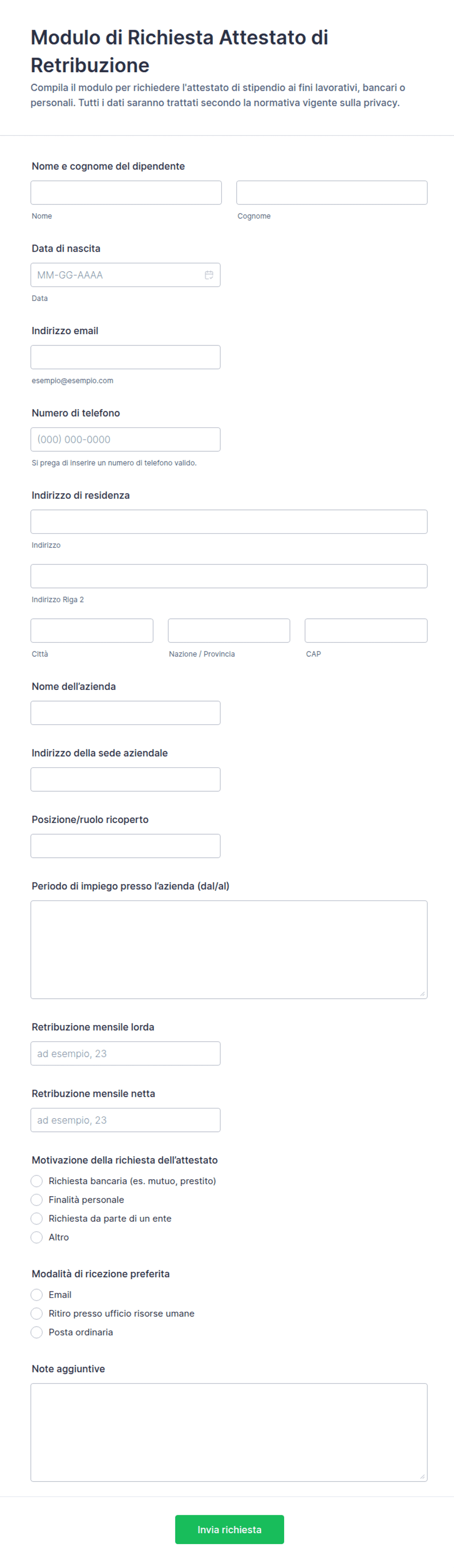3. Quali informazioni sono tipicamente incluse in un modulo di richiesta?